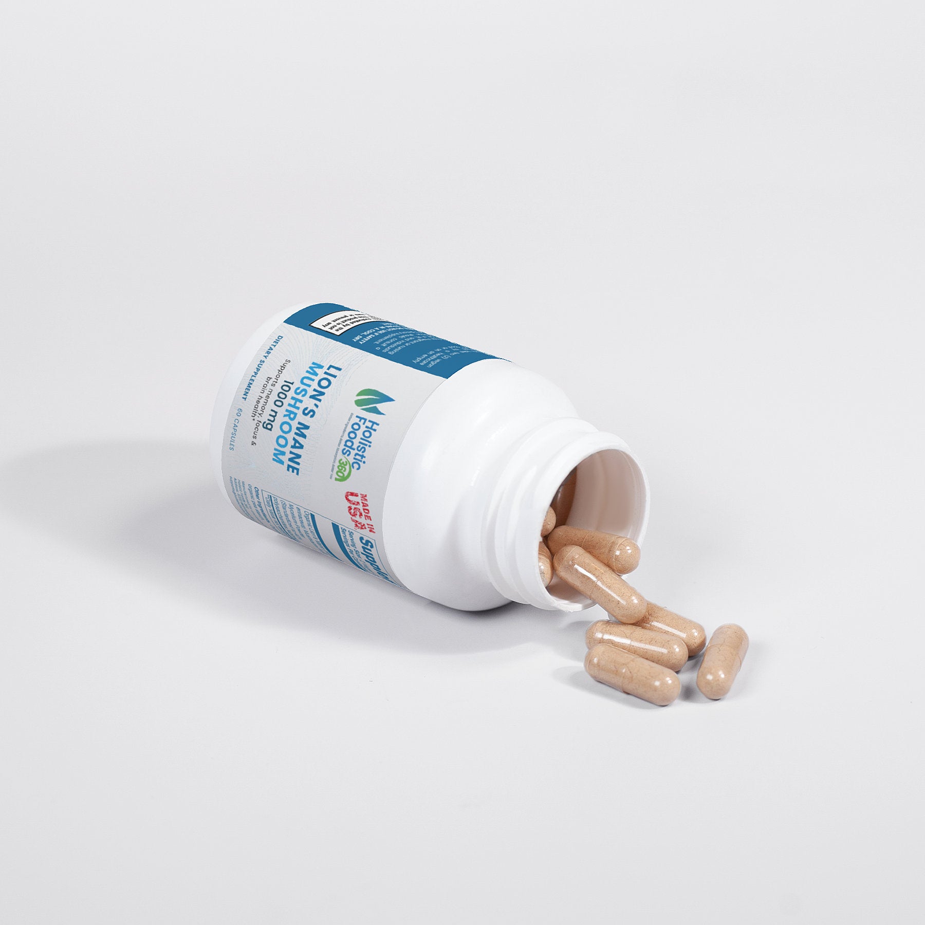 Ingredients: Organic Lion’s Mane (Hericum erinaceus) Mushroom Fruiting Body & Mycelium Powder (Standardized to 40% polysaccharides [400mg]), Organic capsule (pullulan, water), organic pea starch.